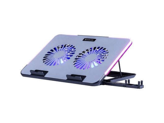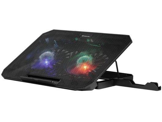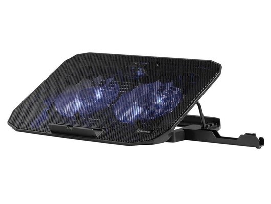 Особенности: держатель для смартфона, регулировка угла наклона подставки, фиксаторы для ноутбука, 2 встроенных USB-порта